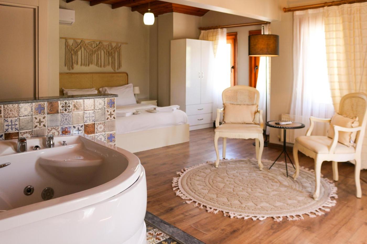 Double Room with Spa Bath. This double rooms standout feature is the fireplace. Offering free toiletries and bathrobes, this double room includes a private bathroom with a bath, a shower and a bidet. The double room offers air conditioning, a minibar, a tea and coffee maker, a wardrobe and a flat-screen TV. The unit offers 1 bed. ;